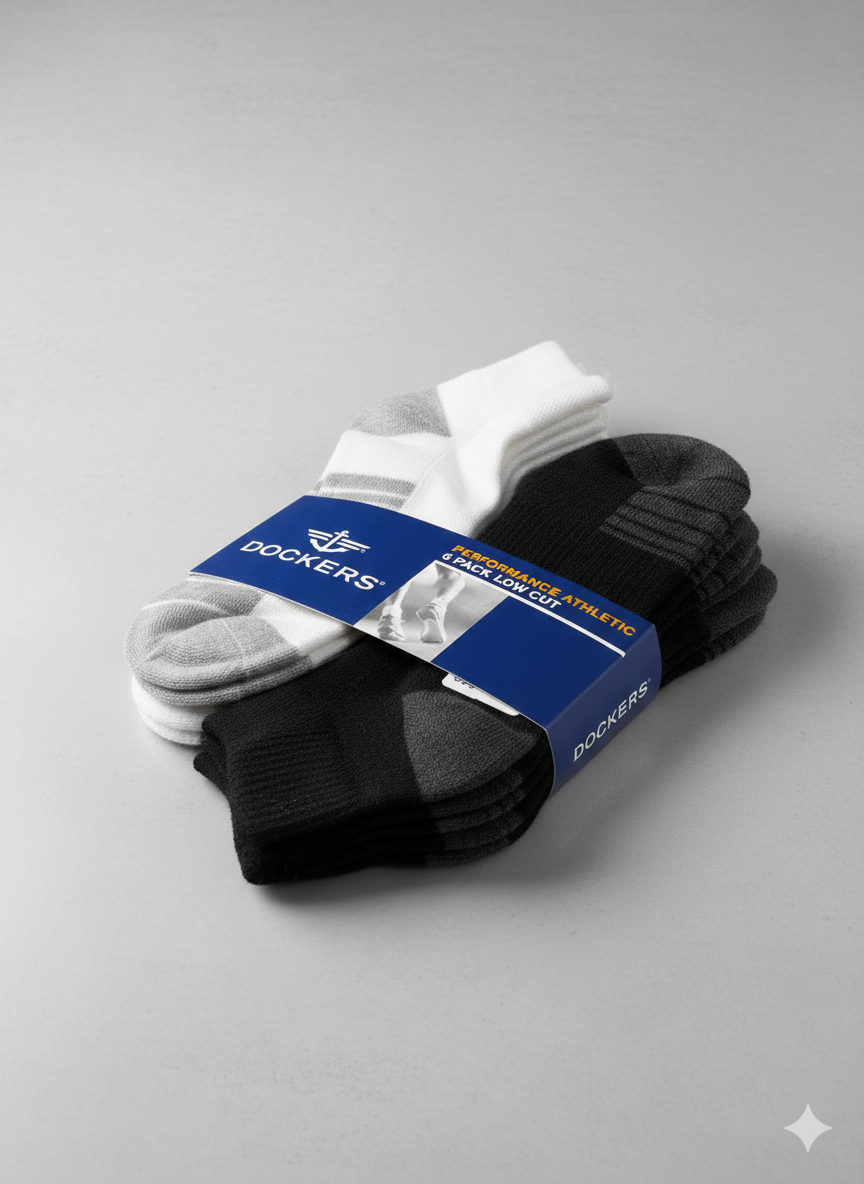 🧦 Dockers Premium Cushioned Short Crew (Low Cut) Socks – Pack of 6